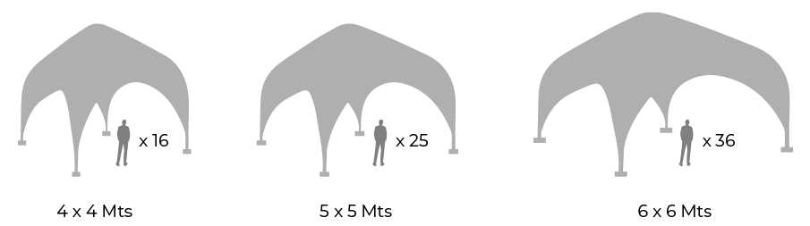 Nuestras carpas iglú están disponibles en 3 tamaños y utilizan un espacio reducido.