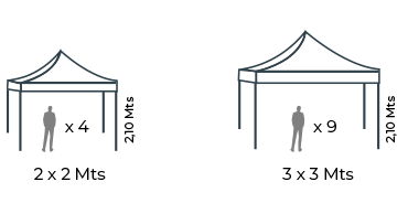 Contamos con los tamaños de toldos plegables más usados para eventos publicitarios o privados. Los toldos 3×3 y toldos 2×2 son los más convenientes para stand publicitarios en eventos de todo tipo.