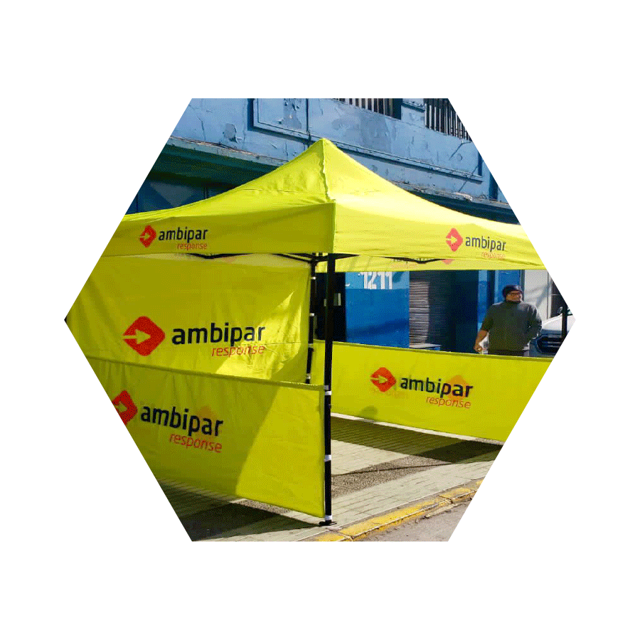 Contamos con la maquinaria necesaria para crear toldos personalizados. Puedes agregar tu logo o imagen en cualquier parte de tu toldo corporativo.